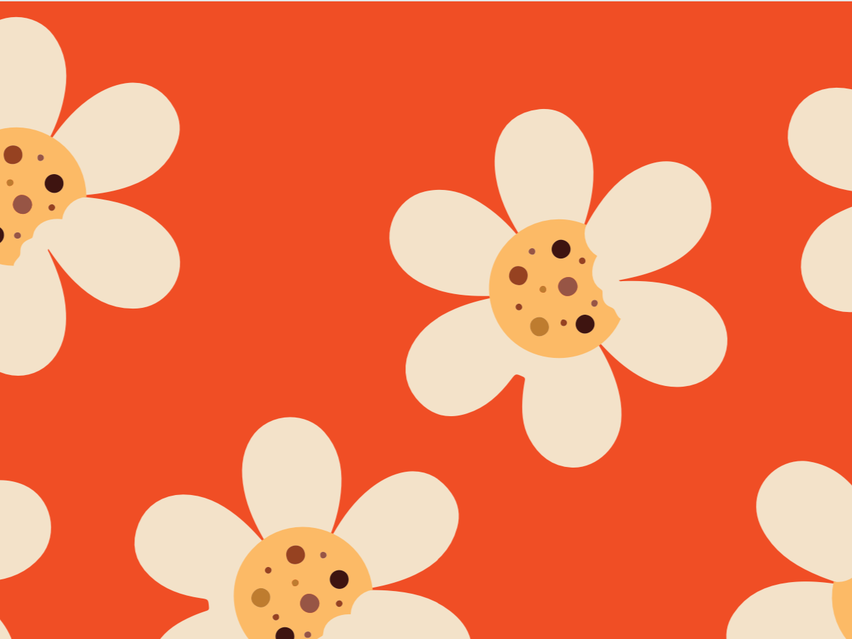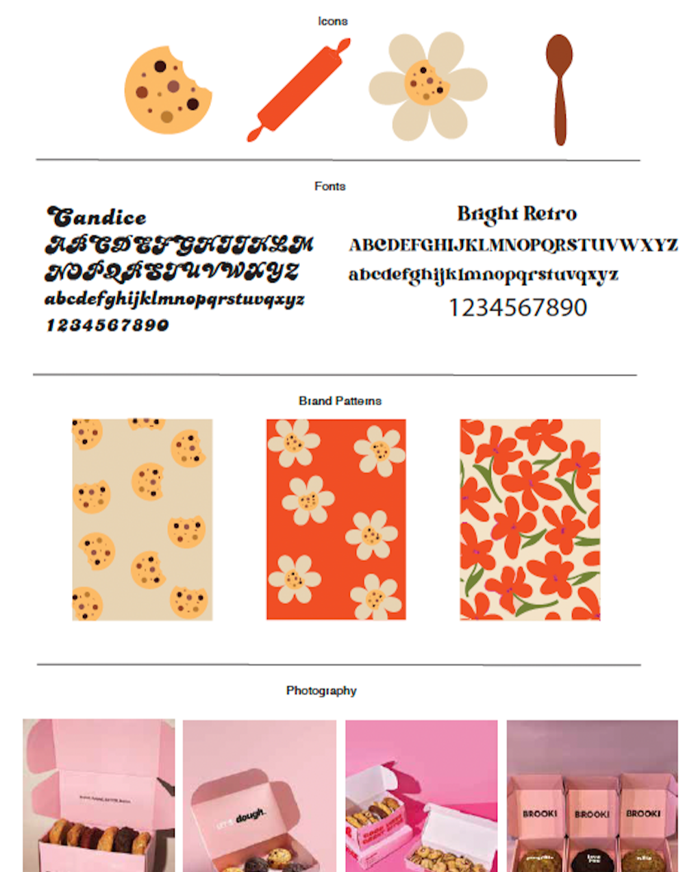 Illustrative patterns are inspired by flowers, cookies, and ere incorporated to enhance storytelling and add personality. These details help unify the bakery and florist concepts into a single visual language.